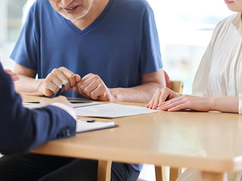 詳しい状況を伺いながらサービス内容や利用料金などについてご説明し、入所申込書にご記入いただきます。